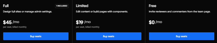 Diese zusätzlichen Plätze nennt Webflow „Seats“.