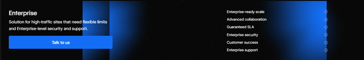 Für große Unternehmen mit hohen Sicherheits-, Traffic- oder Compliance-Anforderungen bietet Webflow individuelle Enterprise-Pläne.